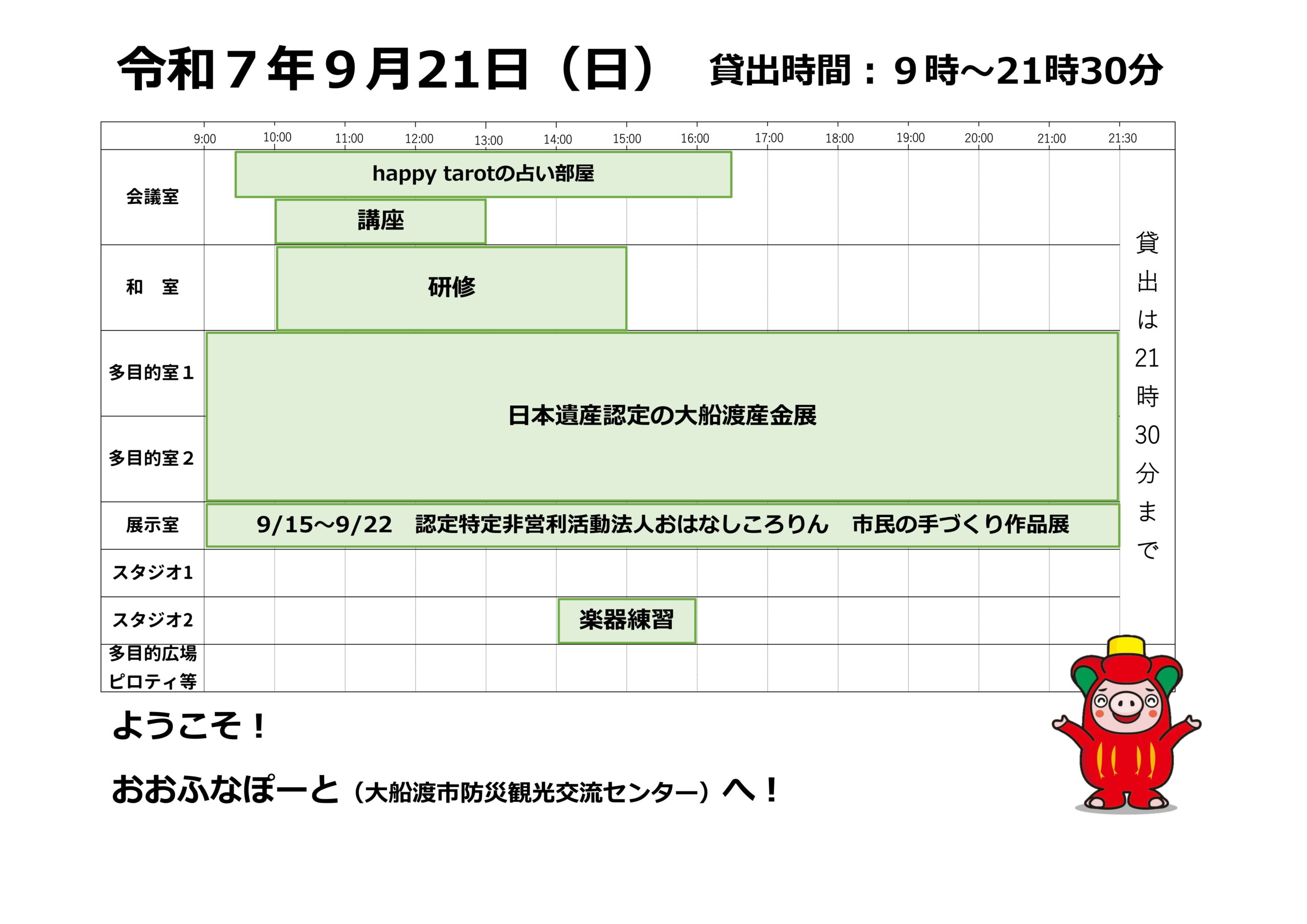 本日の催しと貸館状況