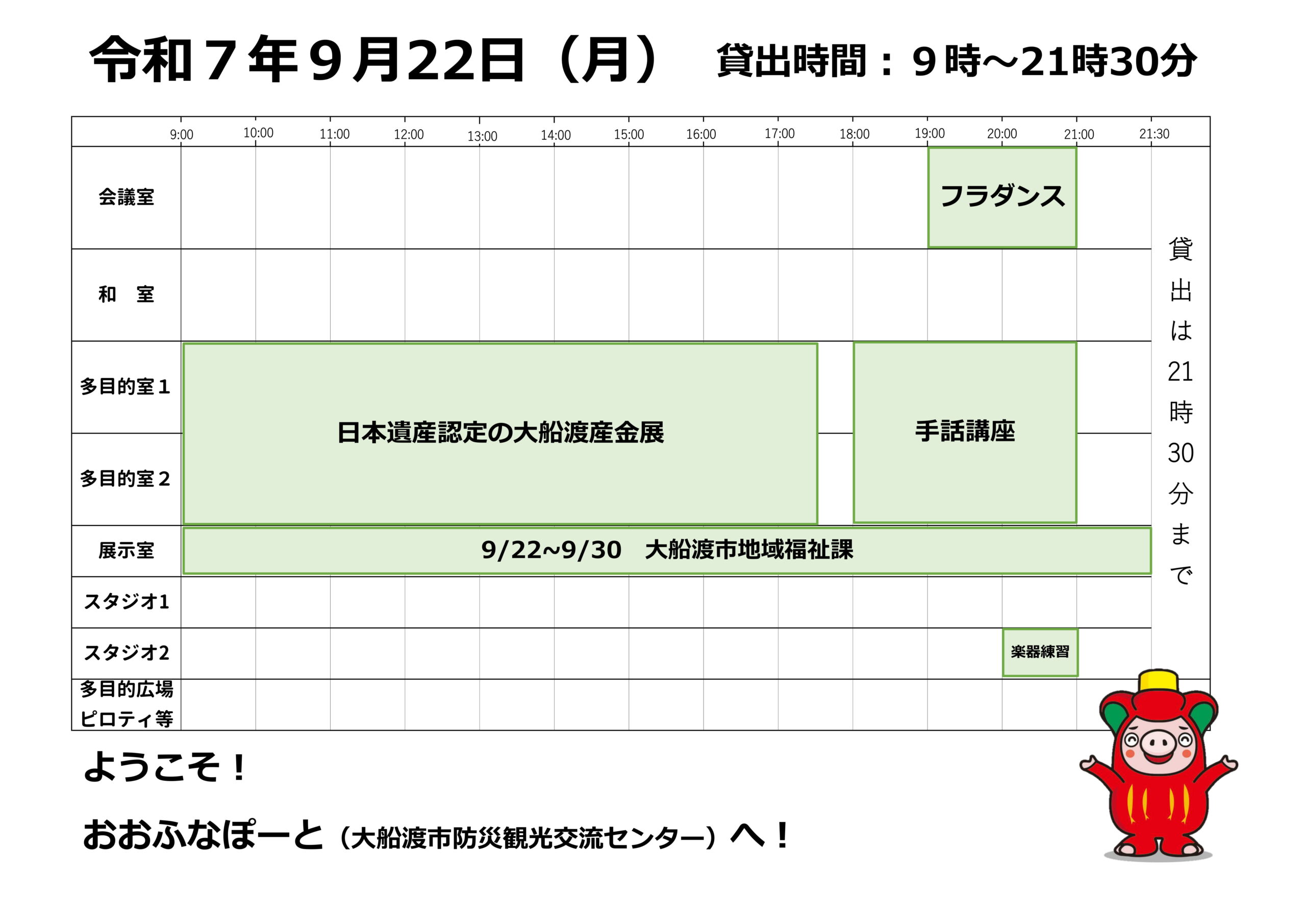 本日の催しと貸館状況