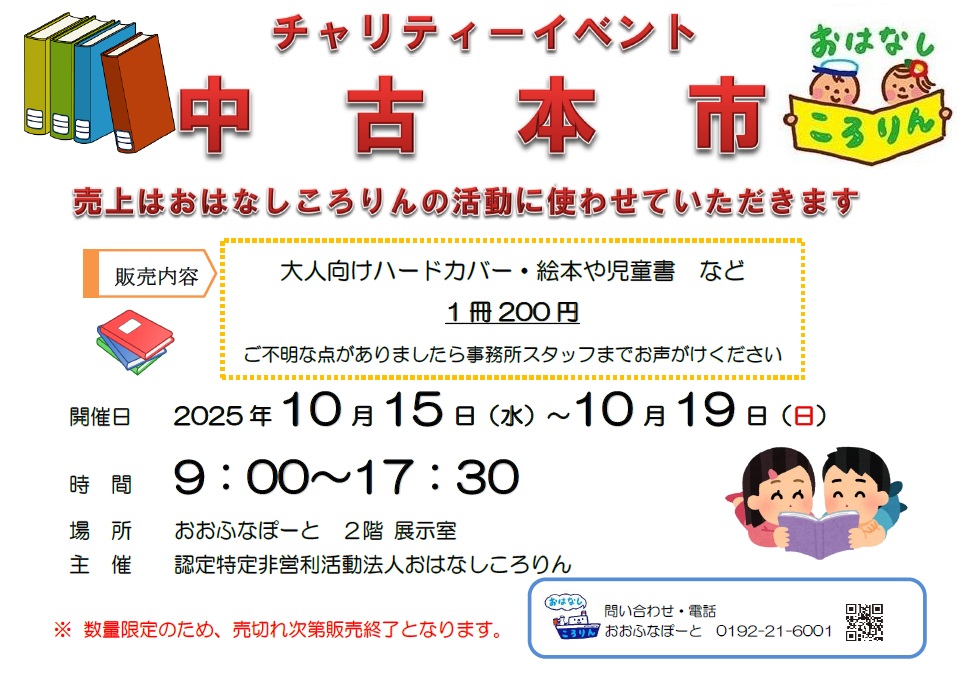 ※売り上げはおはなしころりんの活動に使わせていただきます