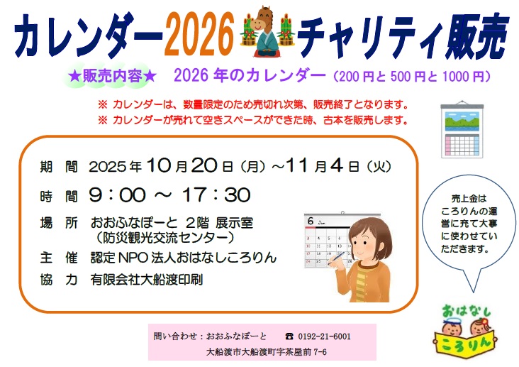 売上金はころりんの運営に充て大事に使わせていただきます。