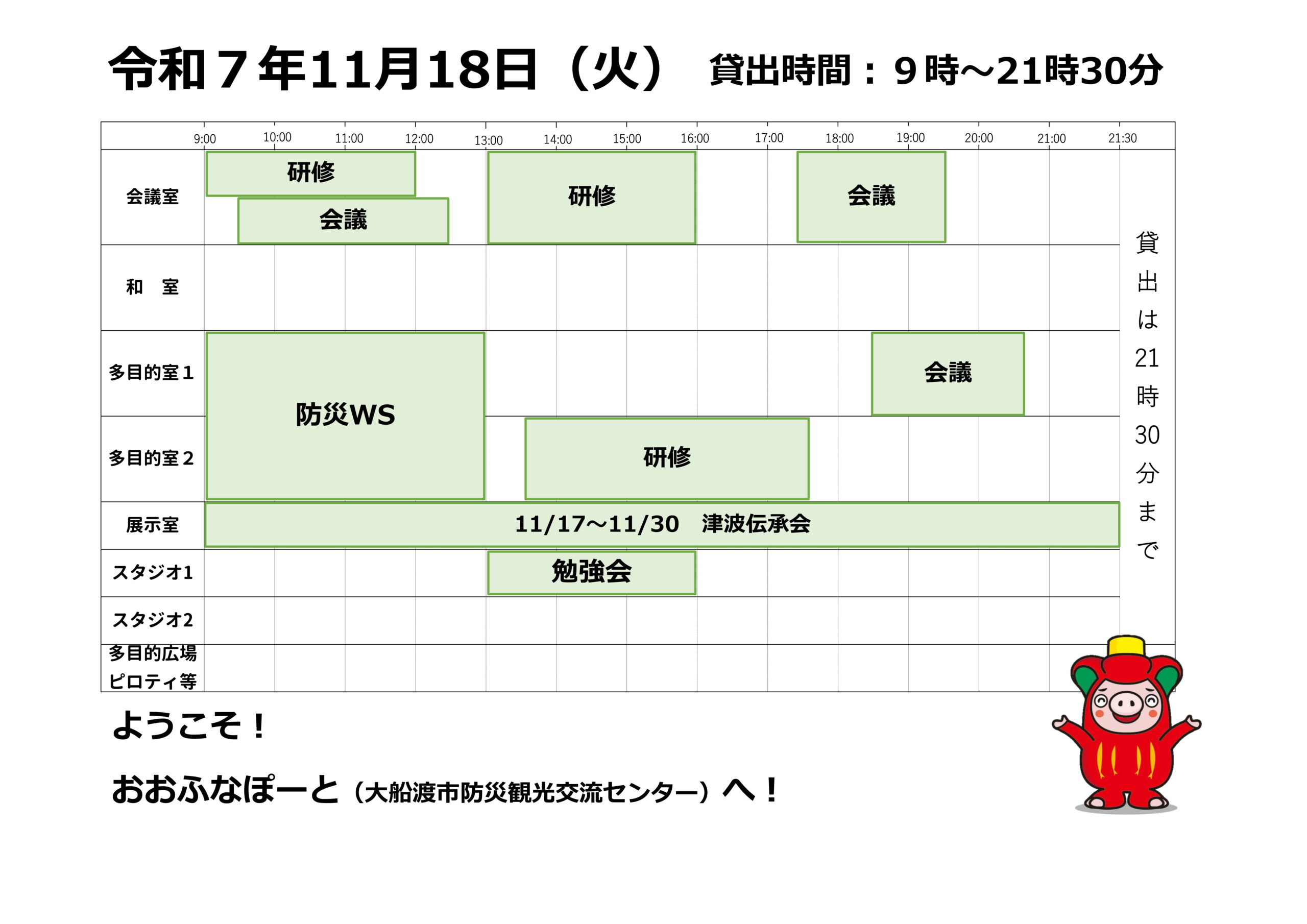本日の催しと貸館状況