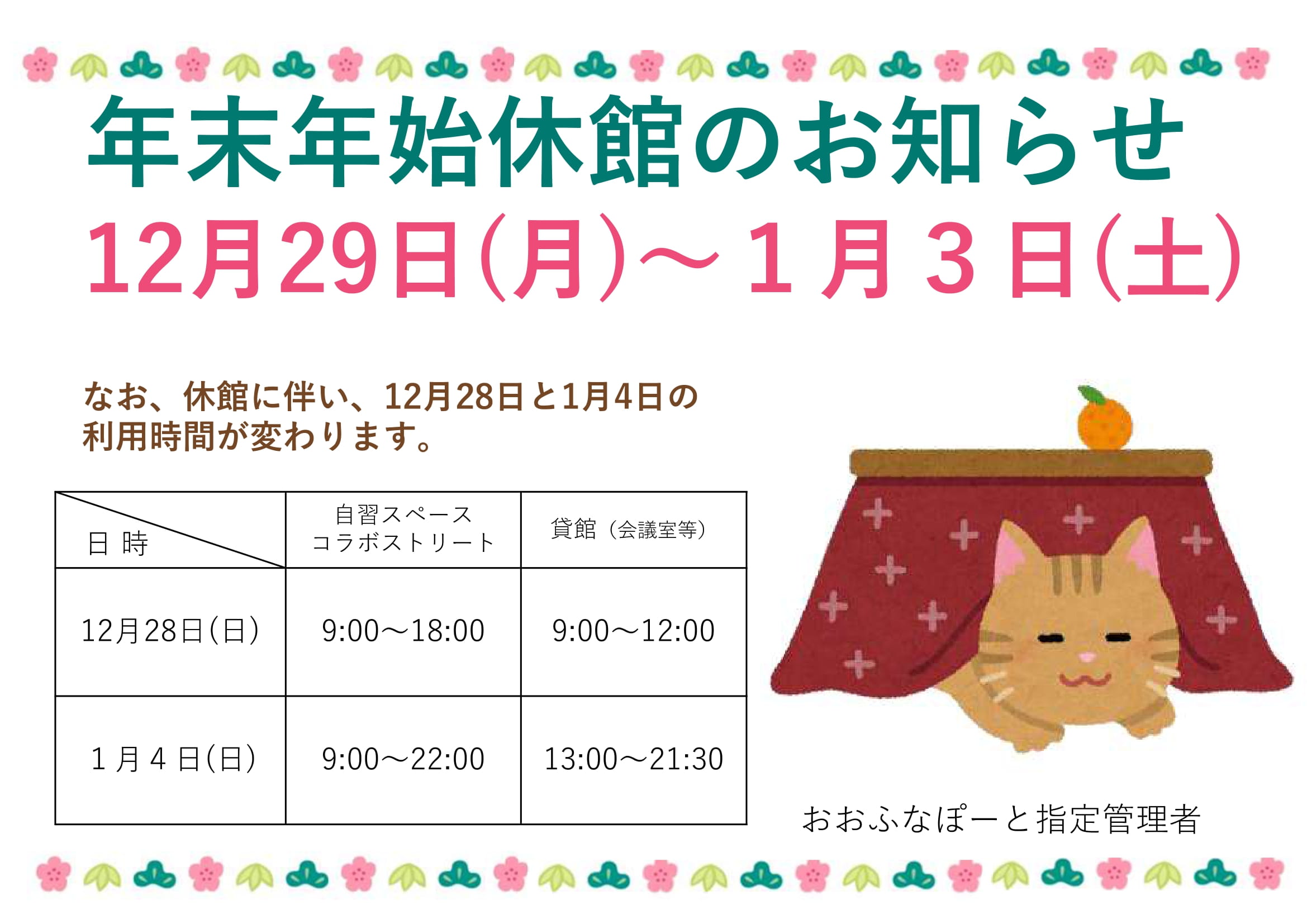 【重要なお知らせ】おおふなぽーと年末年始休館について