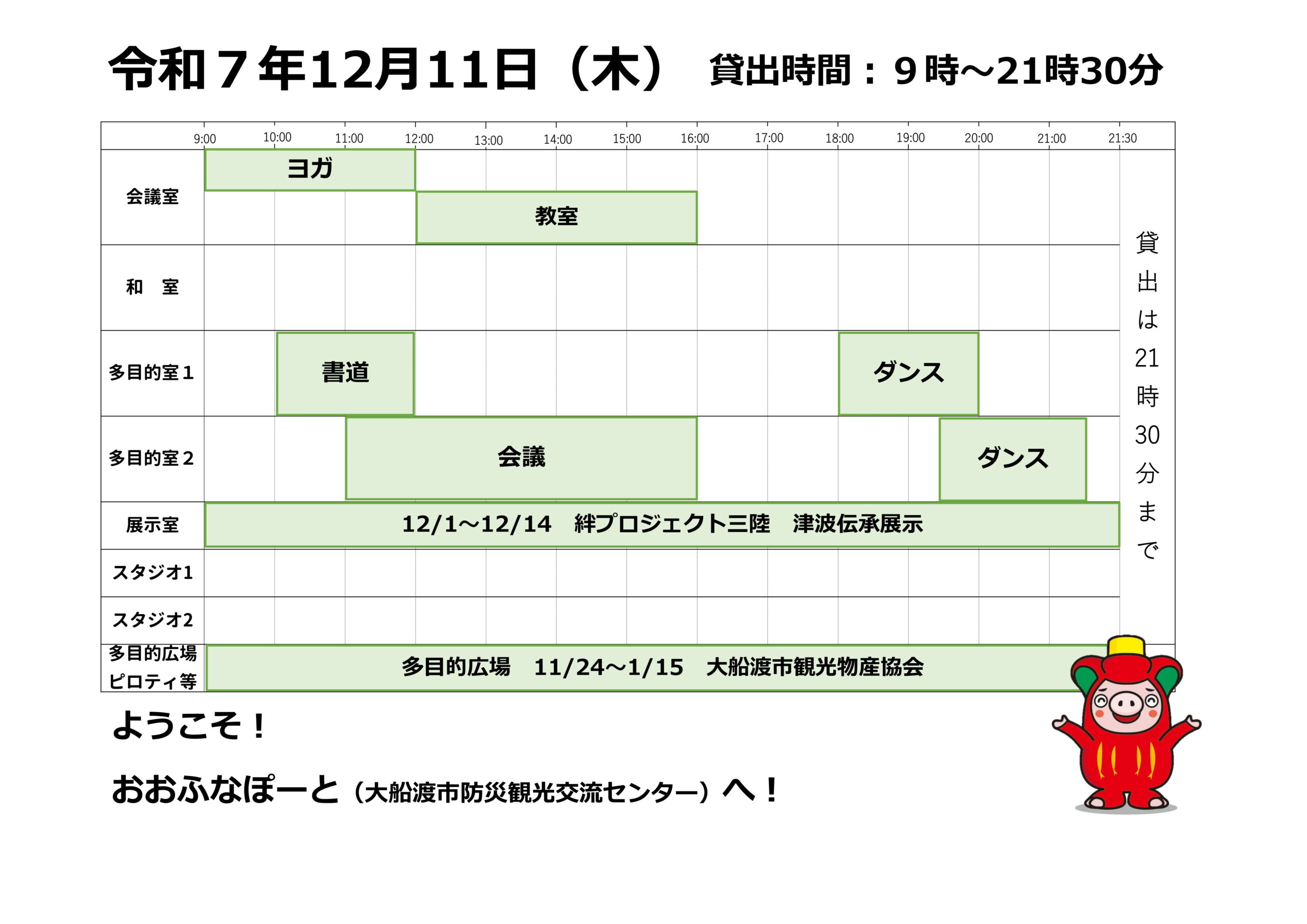 本日の催しと貸館状況