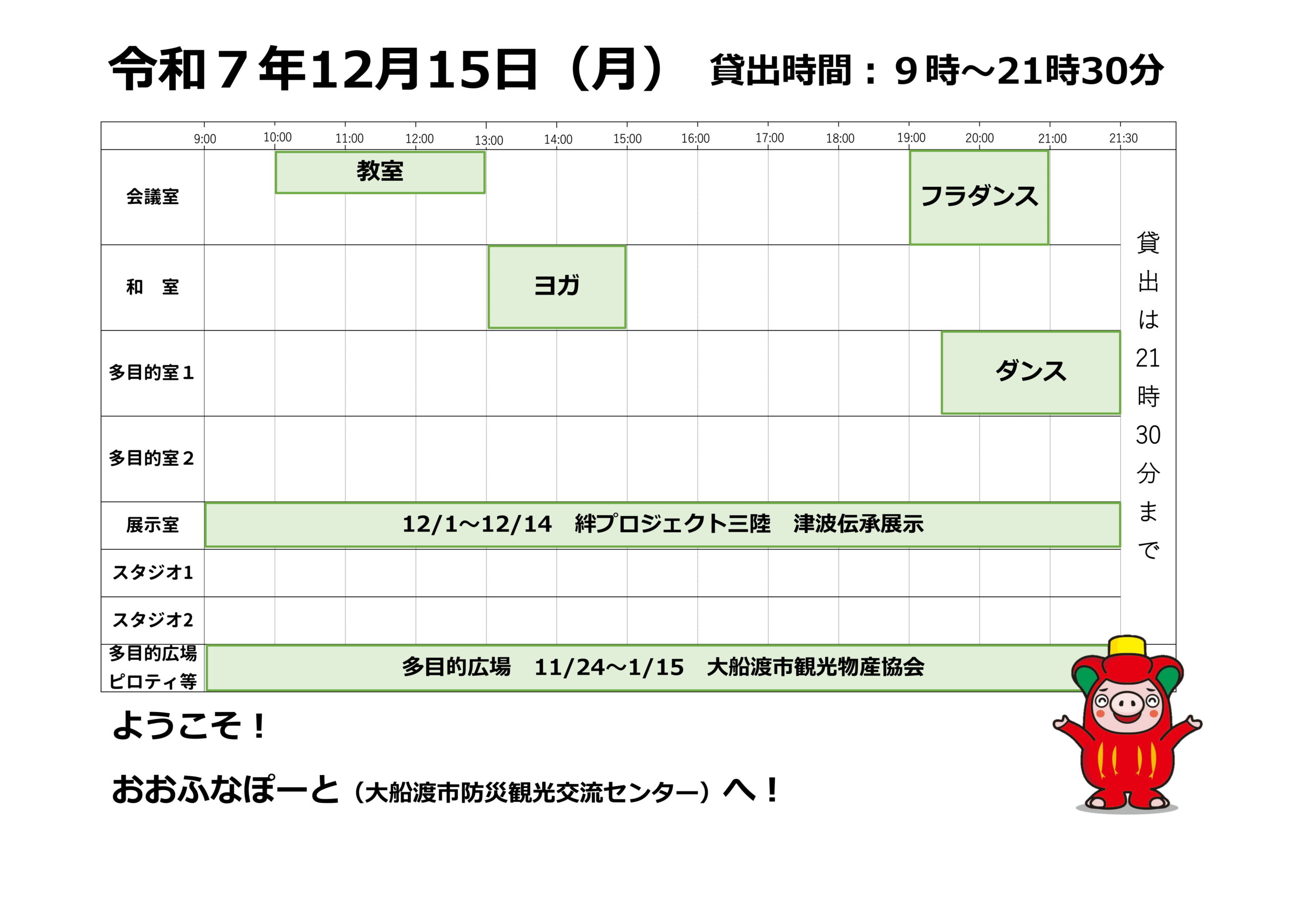 本日の催しと貸館状況