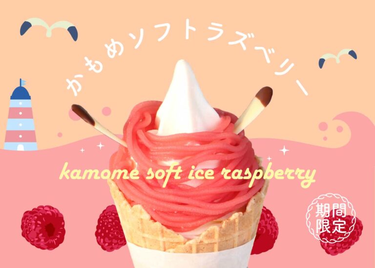 かもめテラスで人気のソフトクリーム『かもめソフト』シリーズに、期間限定、春季を彩る特別な味わいの『かもめソフト☆ラズベリー』が いよいよ1月19日より販売スタートです!!!