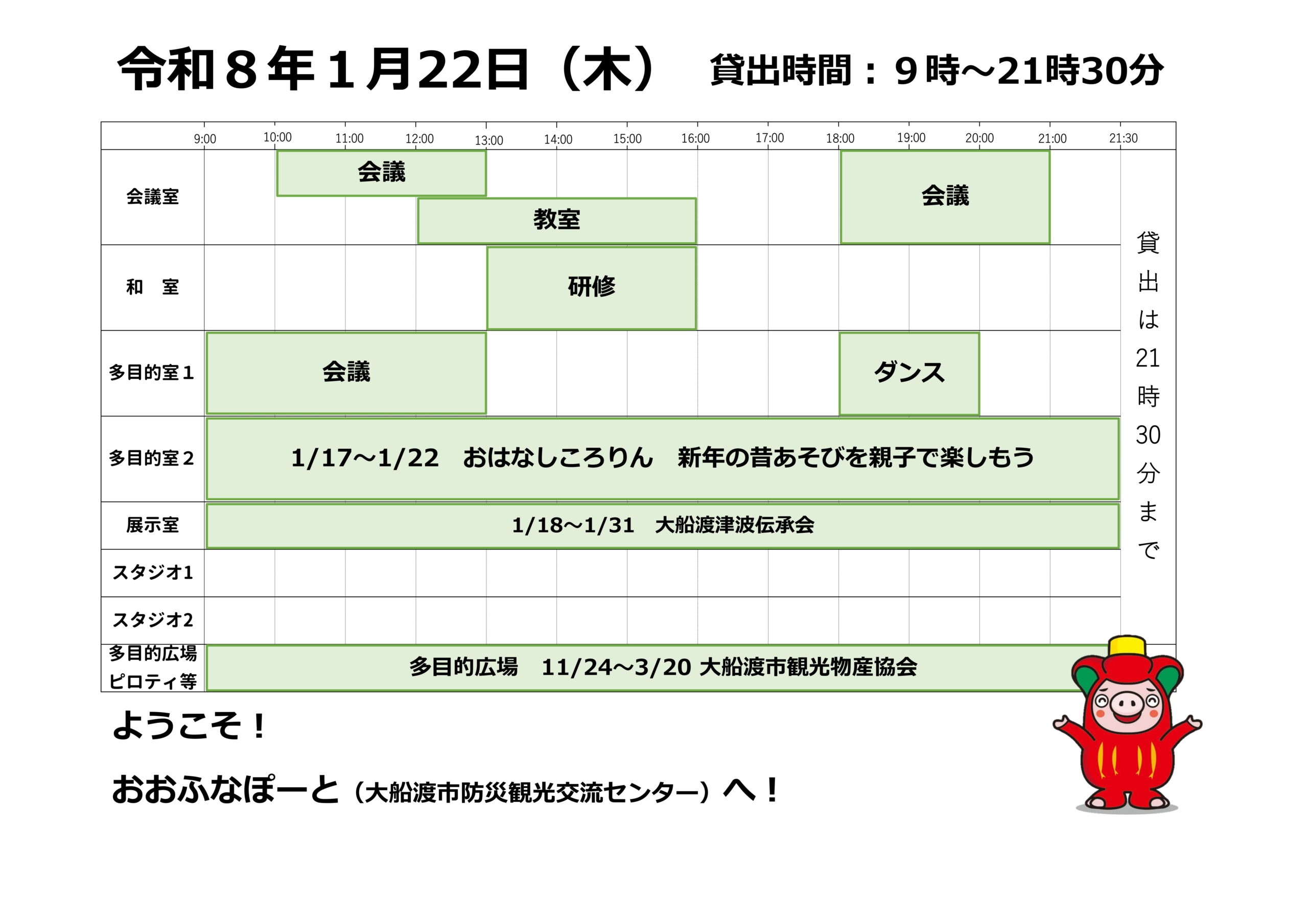 本日の催しと貸館状況