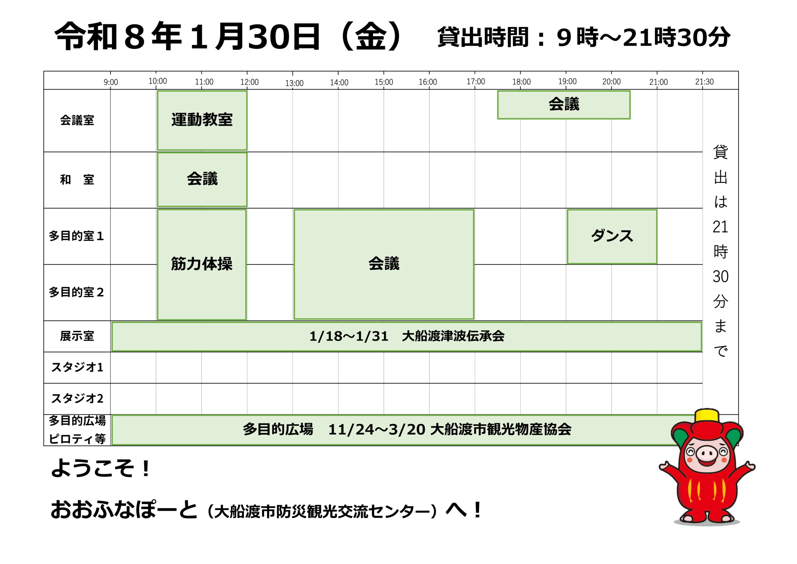 本日の催しと貸館状況