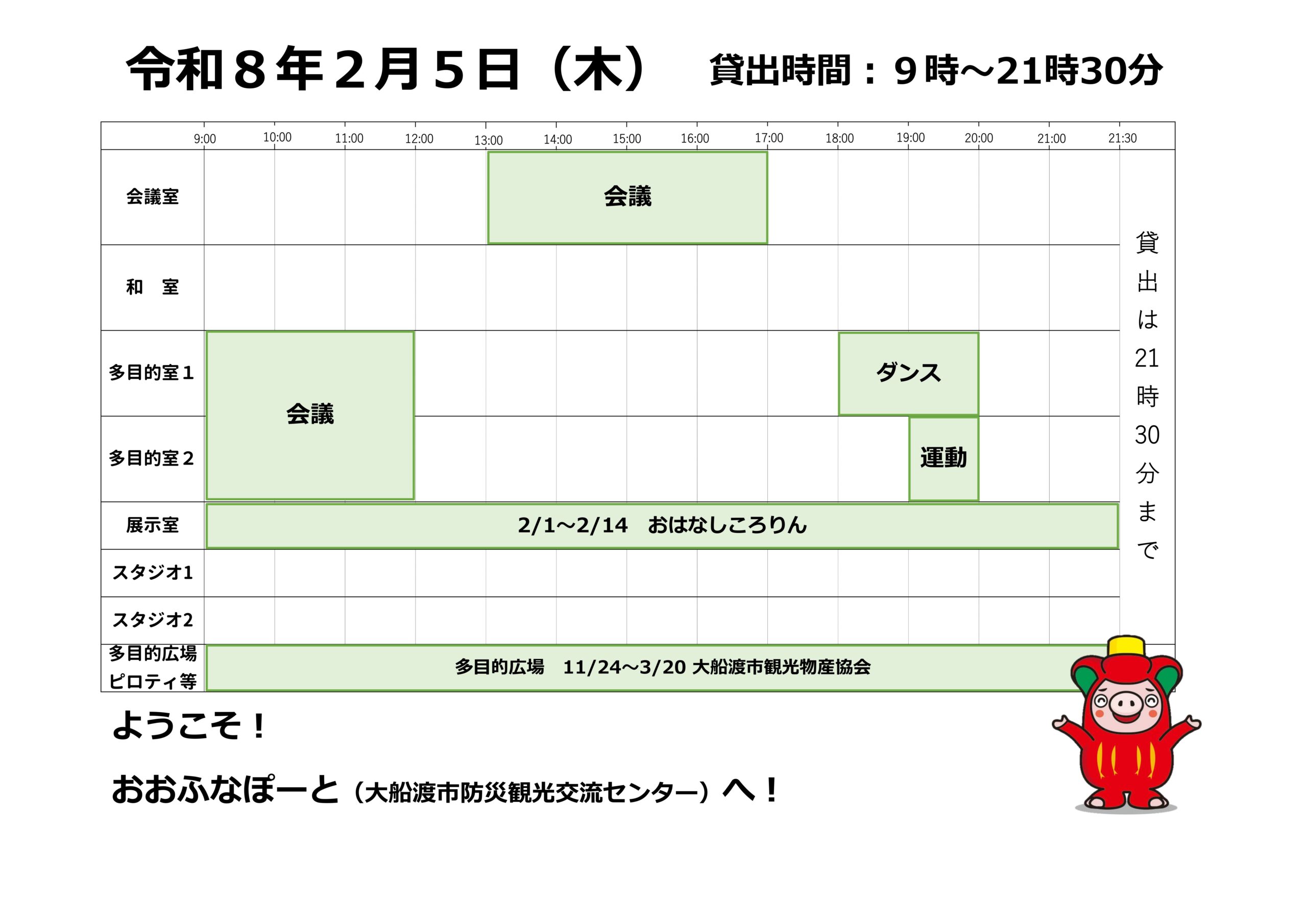 本日の催しと貸館状況