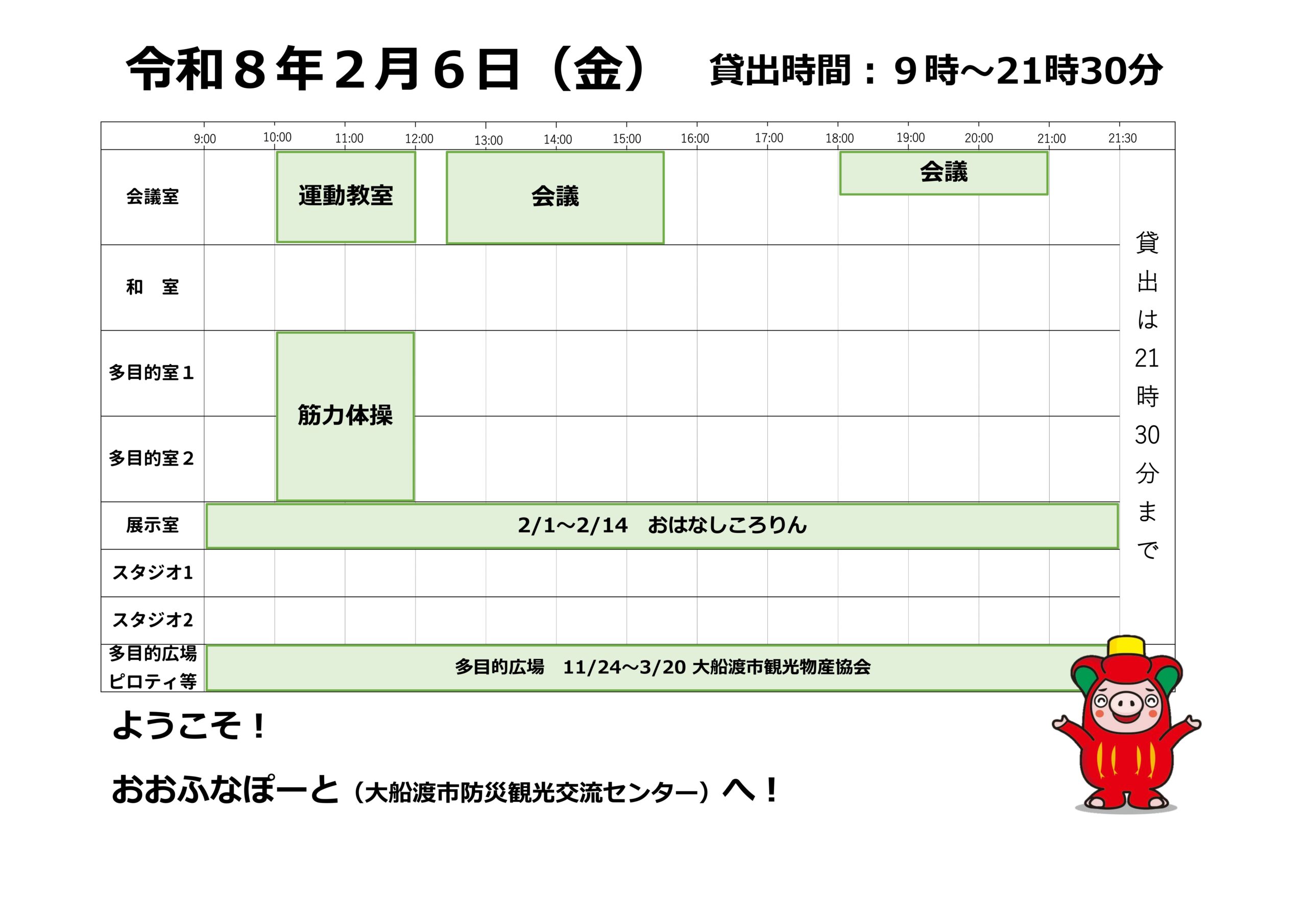 本日の催しと貸館状況