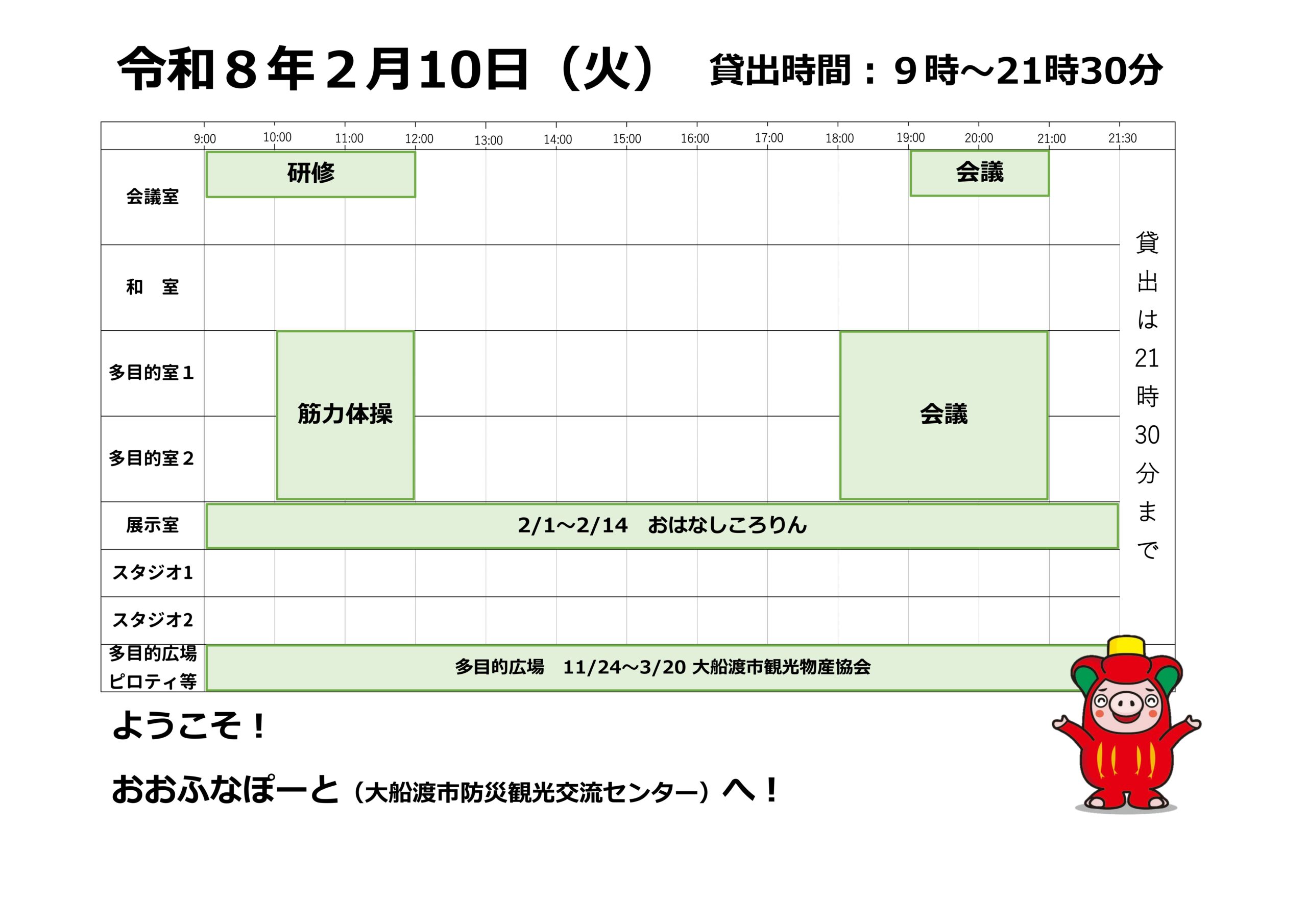 本日の催しと貸館状況