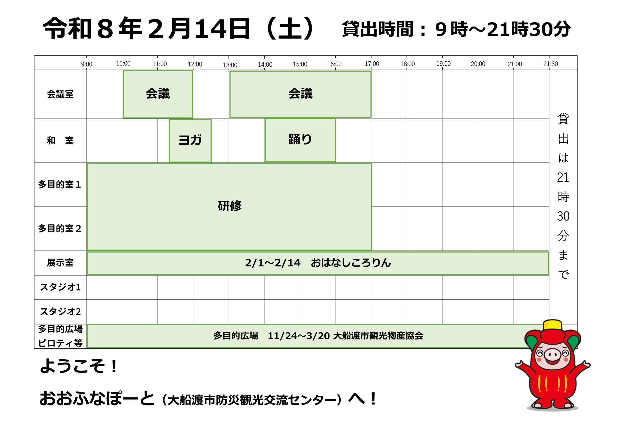 本日の催しと貸館状況