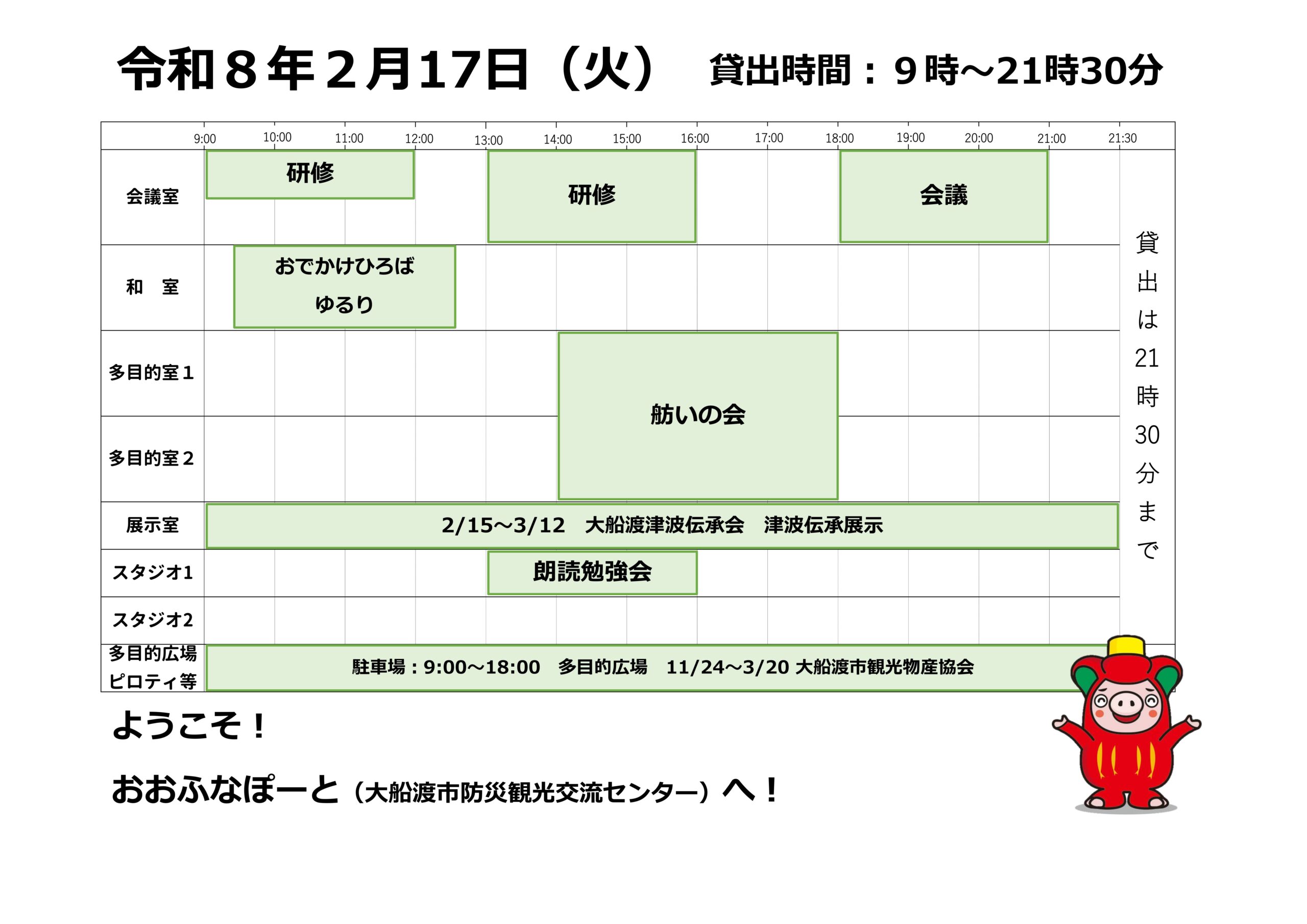 本日の催しと貸館状況
