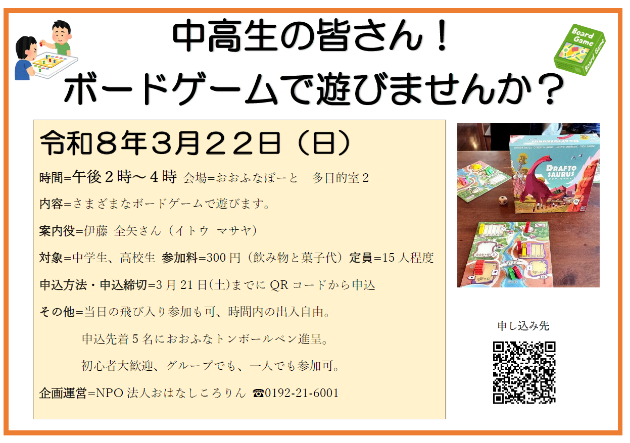 中高生の皆さん! ボードゲームで遊びませんか?