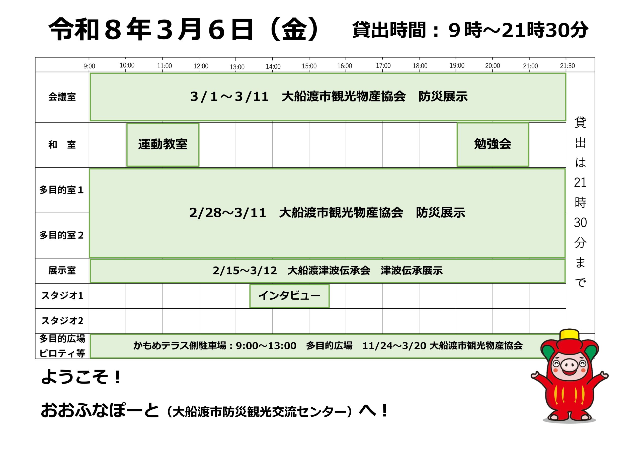 本日の催しと貸館状況