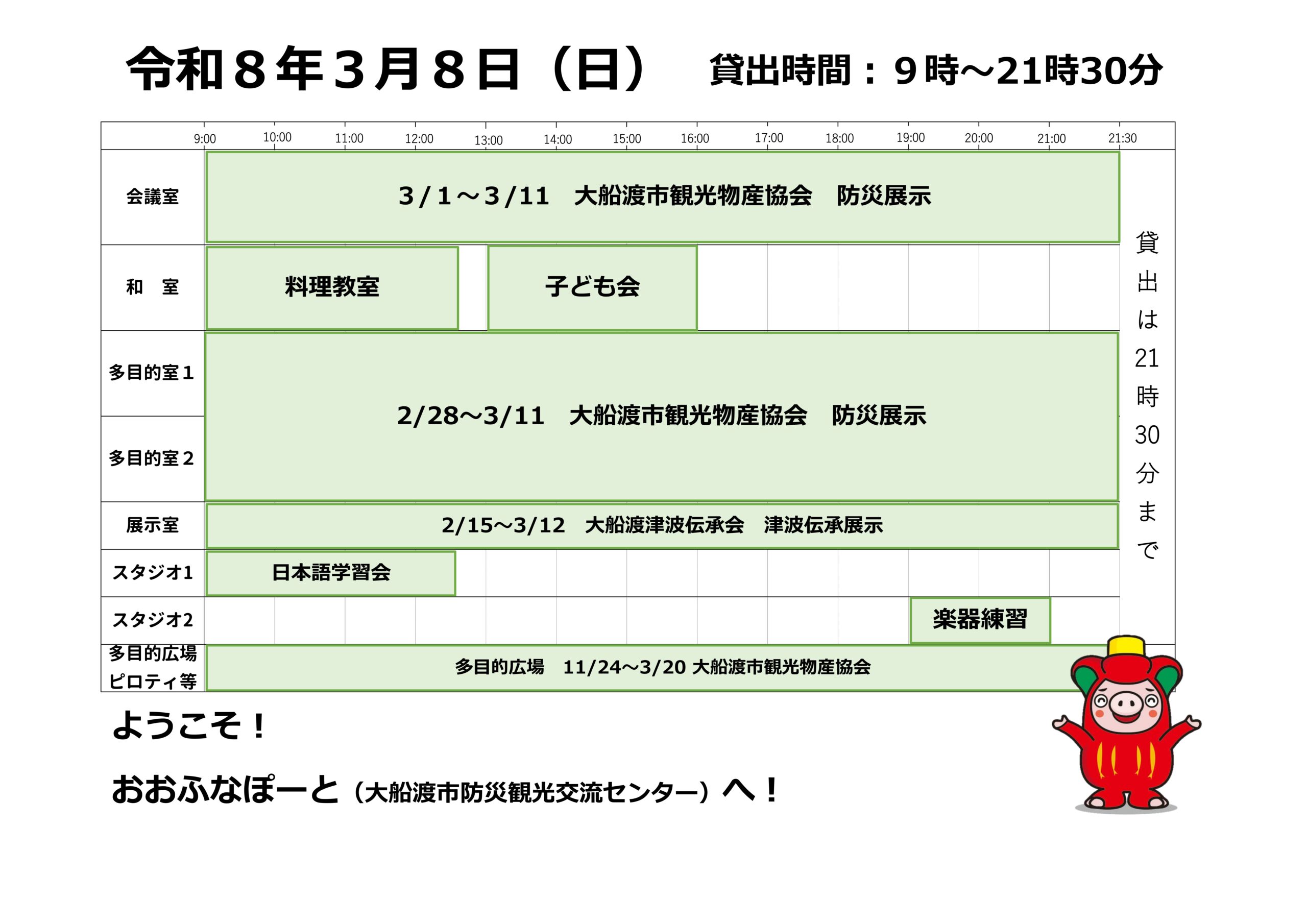 本日の催しと貸館状況