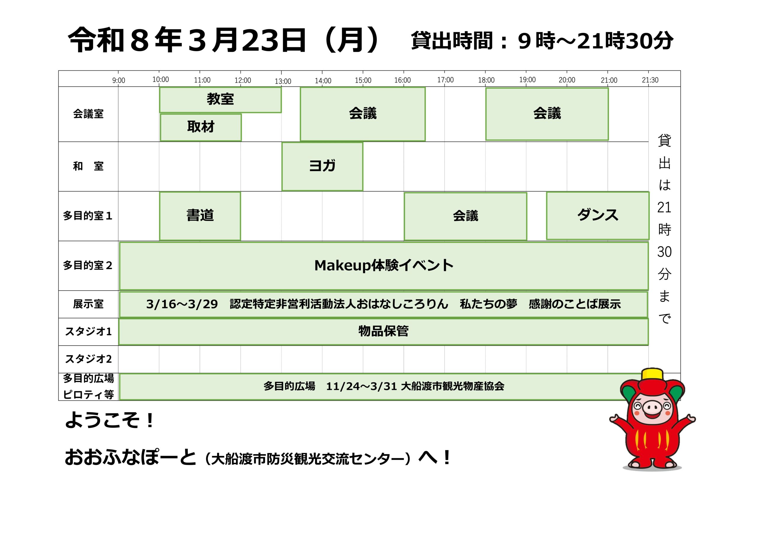 本日の催しと貸館状況