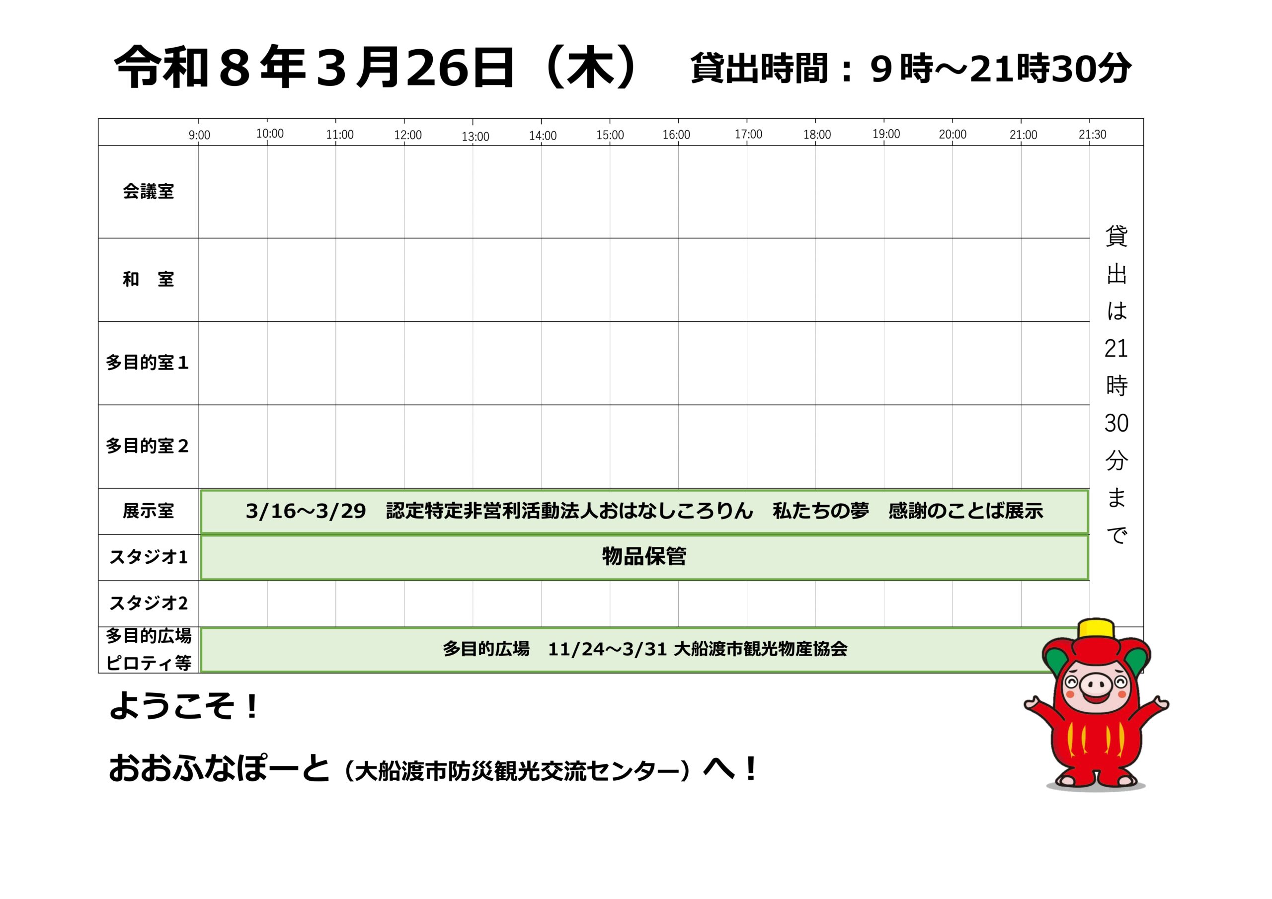 本日の催しと貸館状況