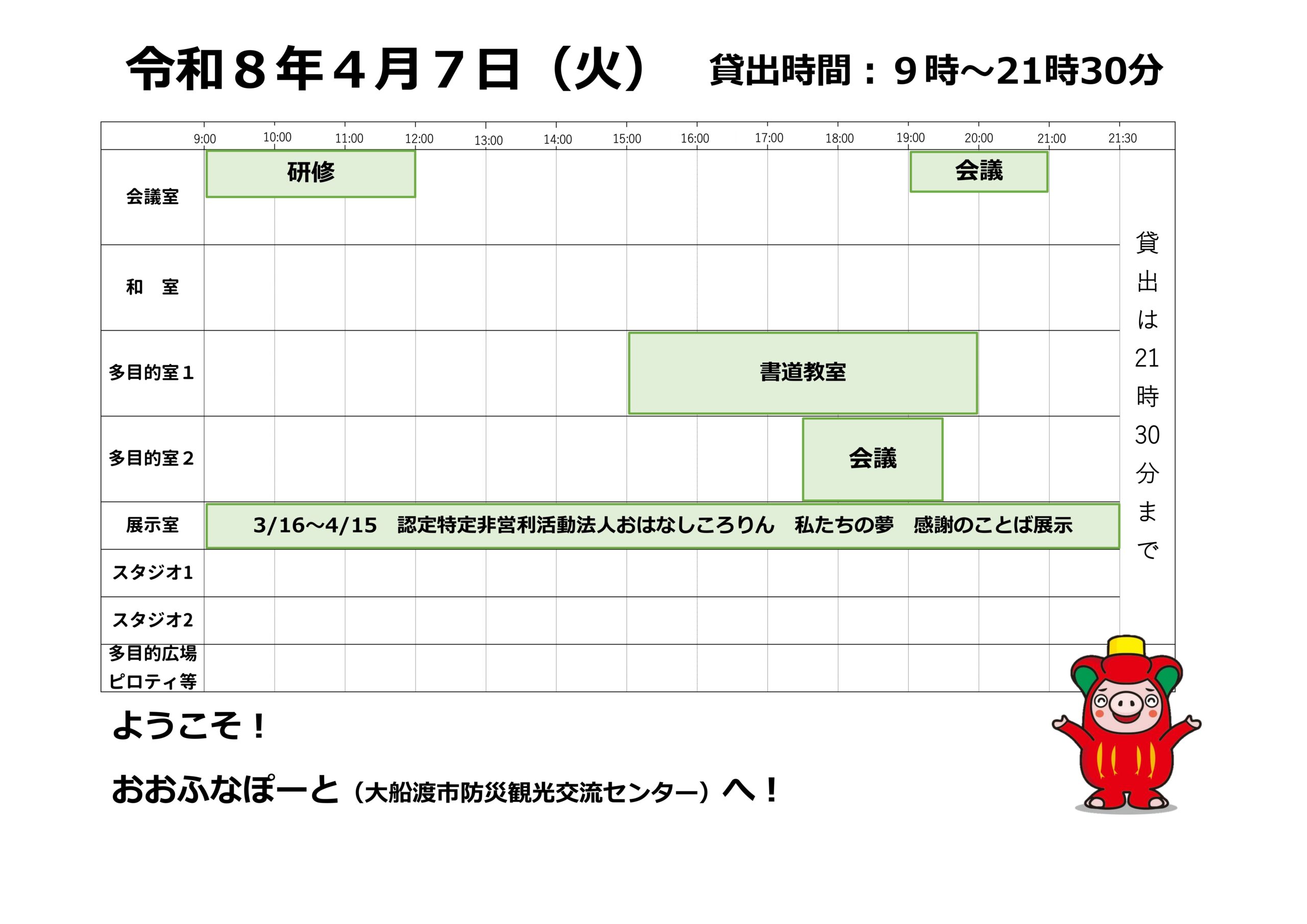 本日の催しと貸館状況