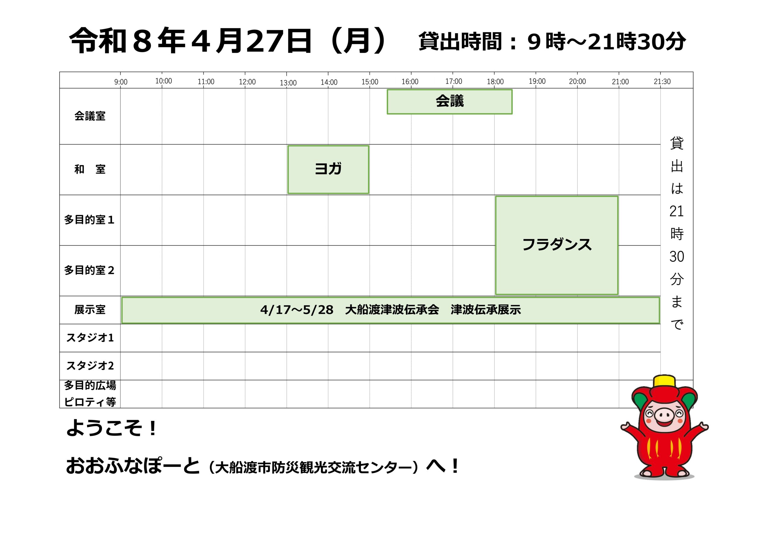 本日の催しと貸館状況
